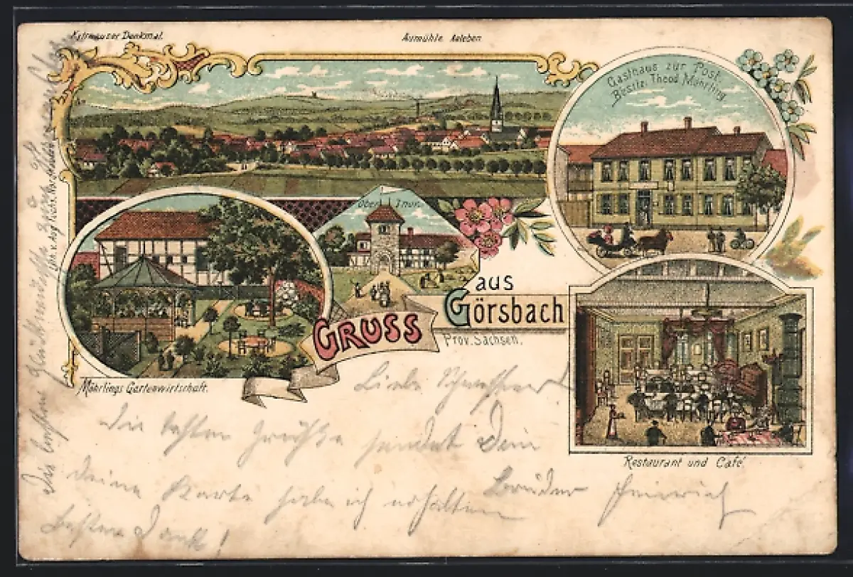 Lithographie Görsbach /Sachsen, Gasthaus zur Post, Bes. Theod. Möhrling, Oberthor