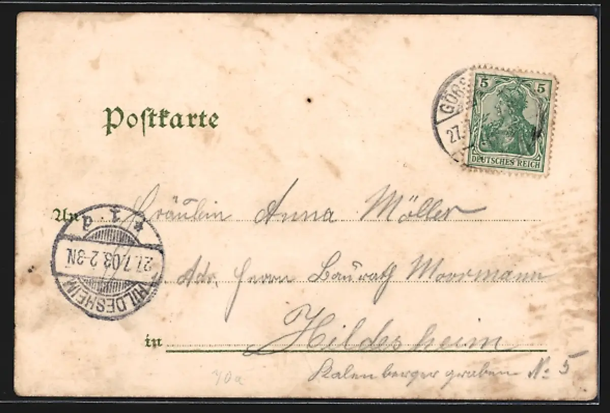 gelaufen 1903, Eckknick re. unten, guter Zustand