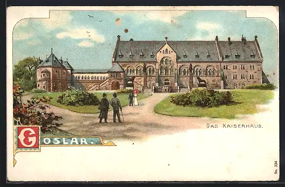 Lithographie Goslar, Vorderansicht vom Kaiserhaus