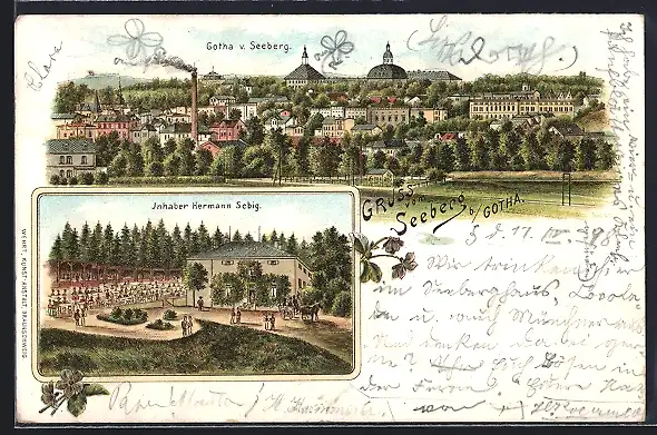 Lithographie Gotha, Gasthof Seeberg, Inh. Hermann Sebig