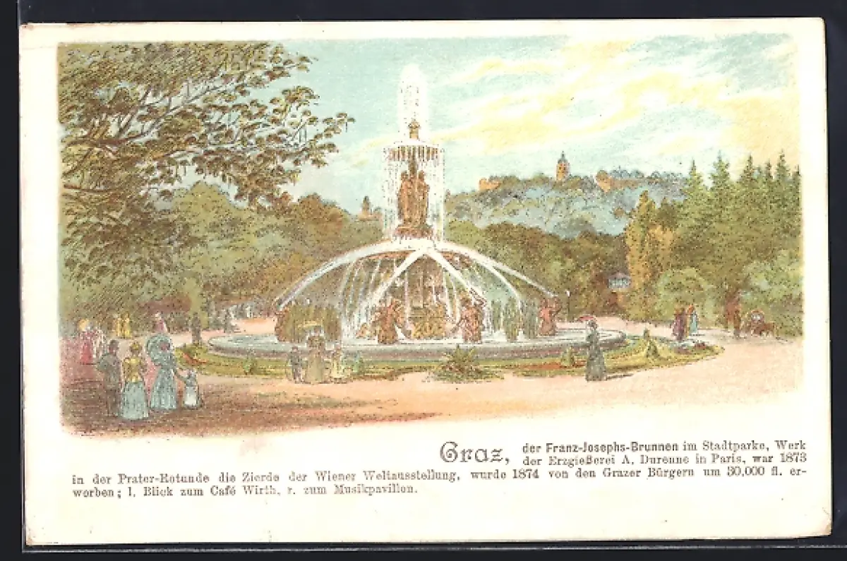 Lithographie Graz, Der Franz-Josephs-Brunnen im Stadtpark