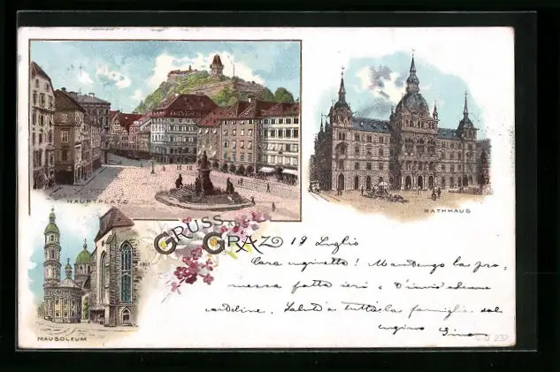 Lithographie Graz, Hauptplatz, Rathaus, Mausoleum