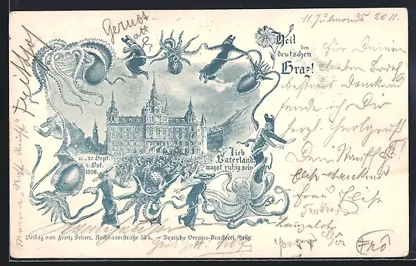 Lithographie Graz, Lieb Vaterland, magst ruhig sein, Platz 1898