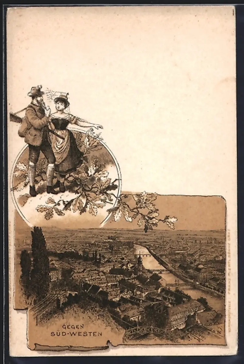 Lithographie Graz, Stadtansicht gegen Südwesten