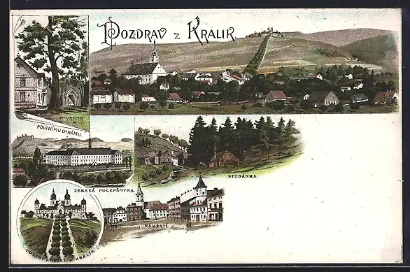 Lithographie Grulich, Ortsansicht von oben, Kressenbrunn, Ring-Platz, Pforte