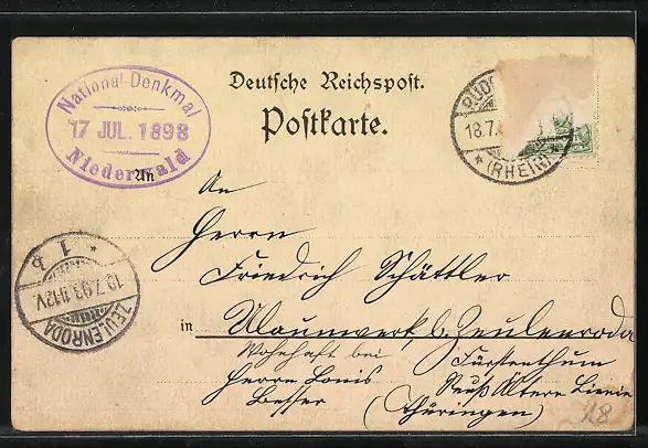 gelaufen 1898, Briefmarke entfernt, rückseitig Oberflächenschaden, Eckknick li. oben, guter Zustand