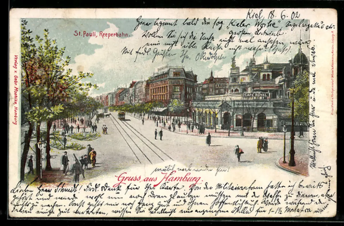 Lithographie Hamburg-St.Pauli, St. Pauli, Reeperbahn