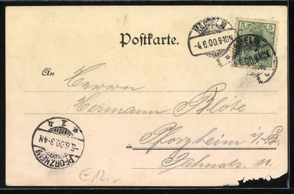 gelaufen 1900, Ecke unten links von den Ratten "angeknabbert", guter Zustand