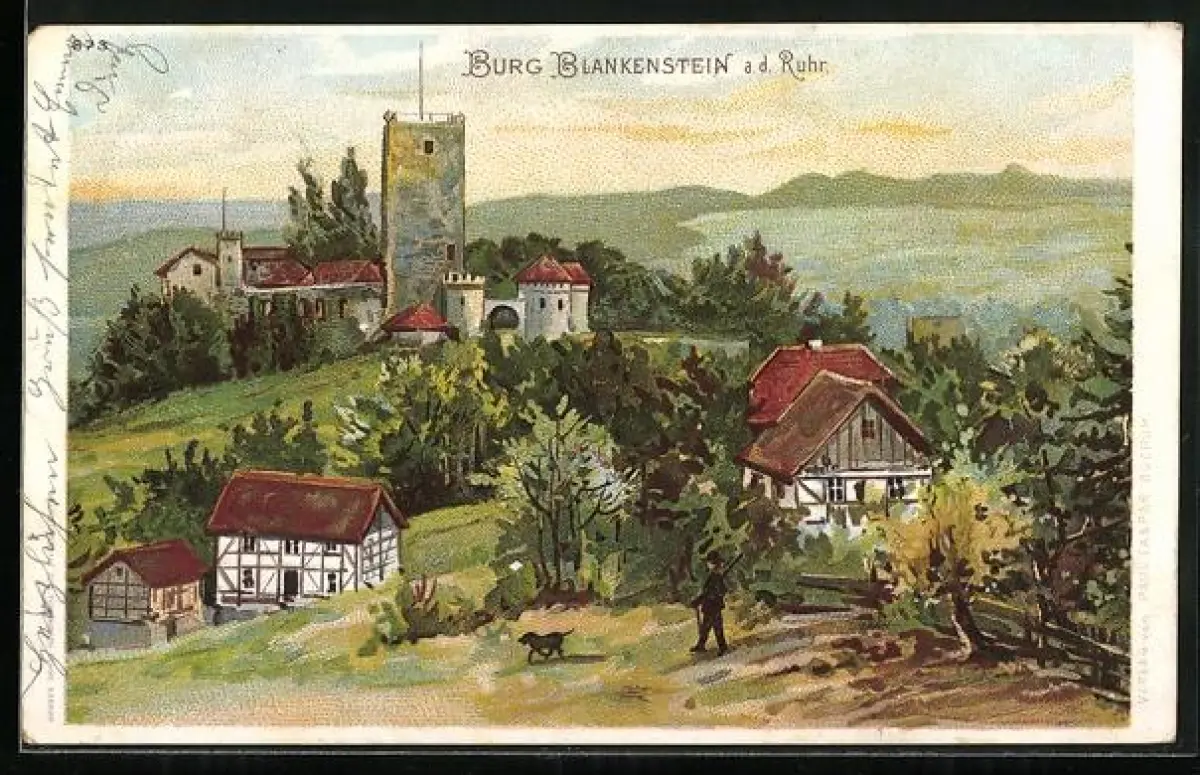 Lithographie Hattingen / Ruhr, Burg Blankenstein