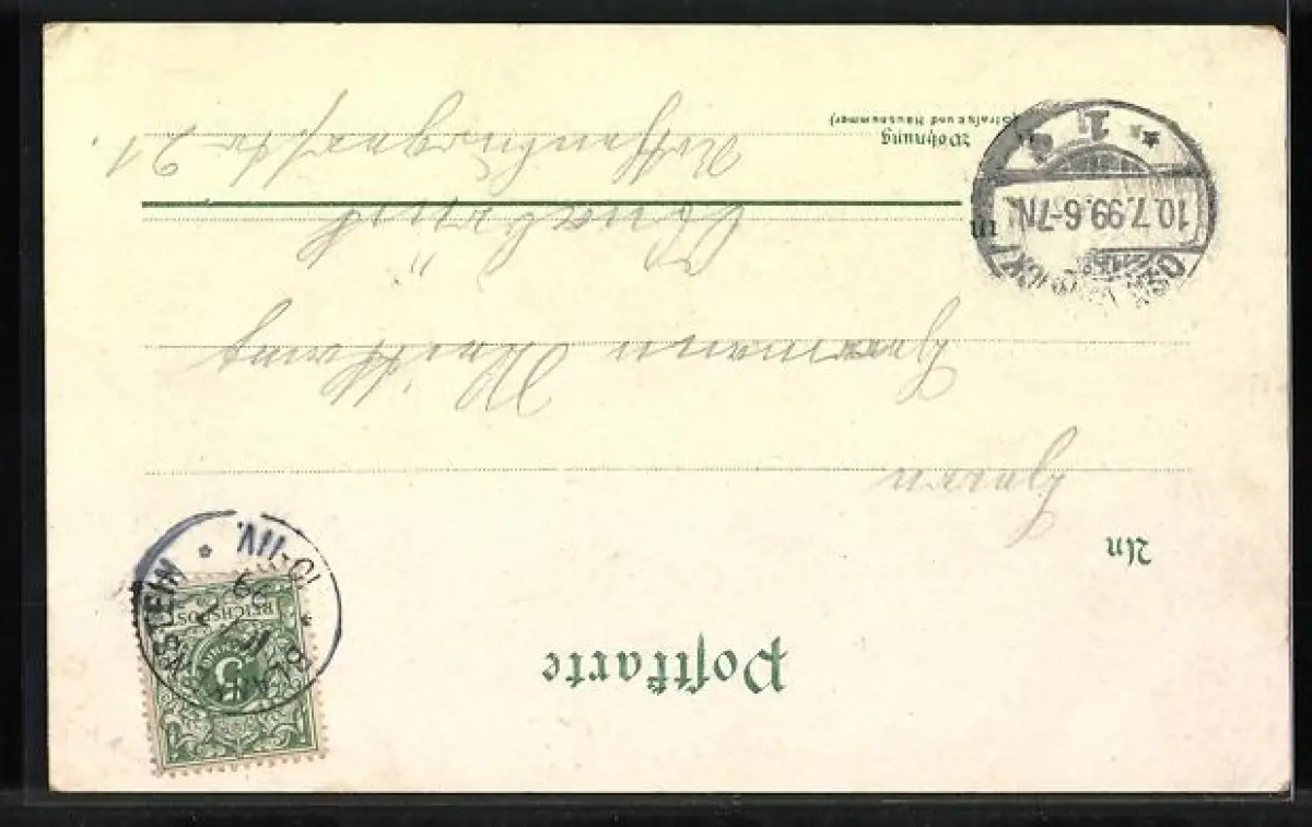 gelaufen 1899, kl. Eckknick rechts oben, guter Zustand