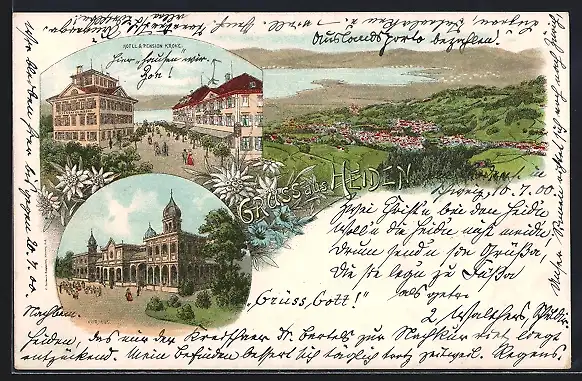 Lithographie Heiden, Hotel u. Pension Krone, Kurhaus und Gesamtansicht