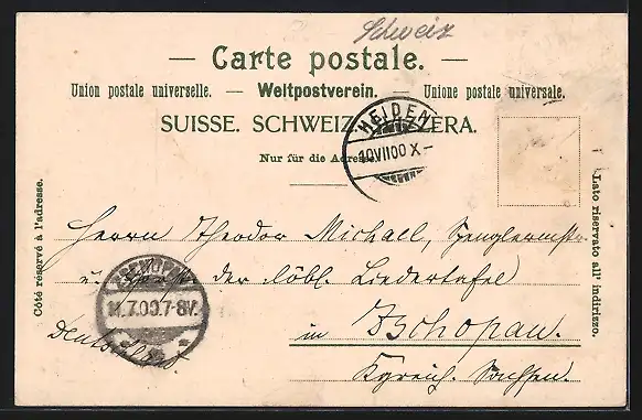 gelaufen 1900, Briefmarke entfernt, guter Zustand