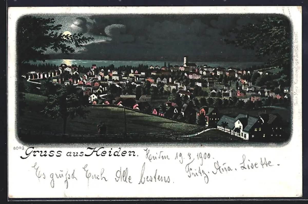 Lithographie Heiden, Totale von der Bergwiese aus gesehen