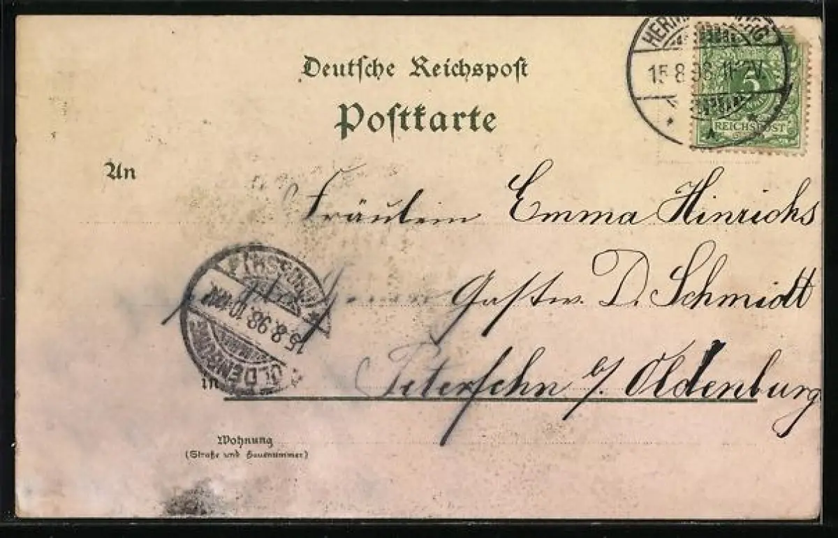 gelaufen 1898, Eckknick oben links, Stempelspur, guter Zustand