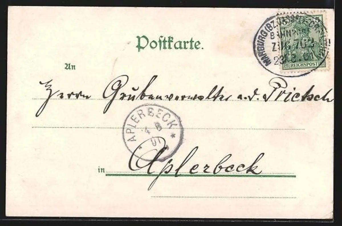 gelaufen 1901, Eckknick li. oben, guter Zustand