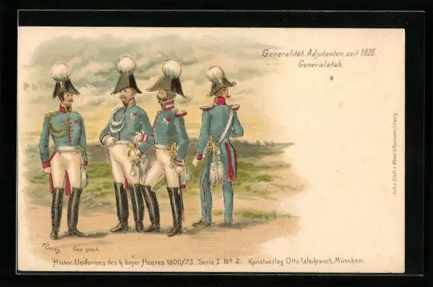 Lithographie Histor. Uniformen des k. bayer. Heeres 1800 /73, Generalität, Adjutanten, Generalstab in Uniform