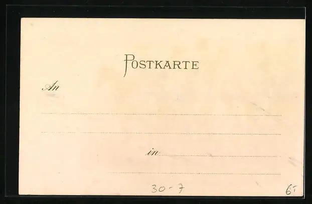 Personenbezogene Daten auf der Rückseite der Karte wurden durch blauen Textmarker unkenntlich gemacht. Die blauen Stellen sind auf die Vorderseite durchgeweicht und wirken sich negativ auf das Postkartenfoto aus