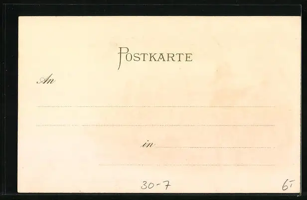 Personenbezogene Daten auf der Rückseite der Karte wurden durch blauen Textmarker unkenntlich gemacht. Die blauen Stellen sind auf die Vorderseite durchgeweicht und wirken sich negativ auf das Postkartenfoto aus