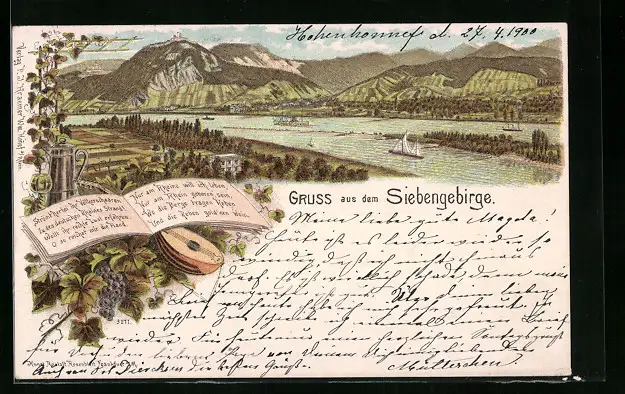 Lithographie Hohenhonnef / Siebengebirge, Totalansicht