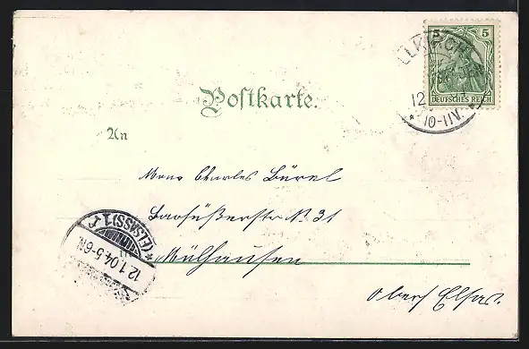 gelaufen 1904, Eckknick li. oben, guter Zustand