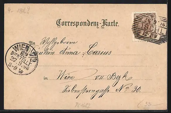 gelaufen 1896, Eckknick und Bugspur li. oben, guter Zustand