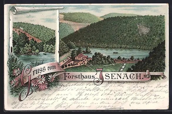 Lithographie Isenach, Totalansicht mit Uferpartie