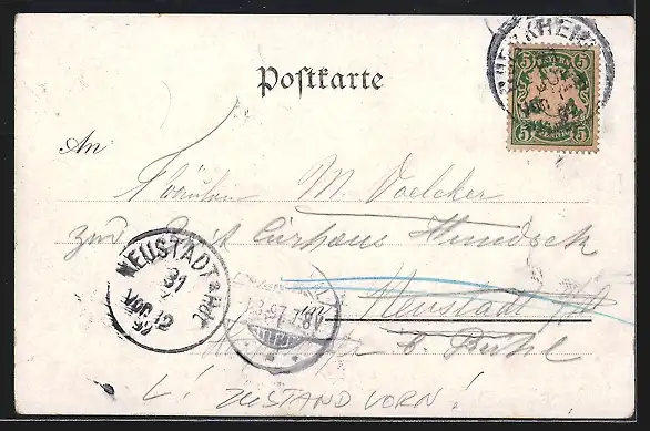 gelaufen 1897, Eckknick re. unten, Oberflächenschaden re. oben