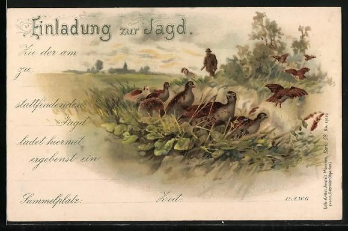Lithographie Jäger auf Wachteljagd