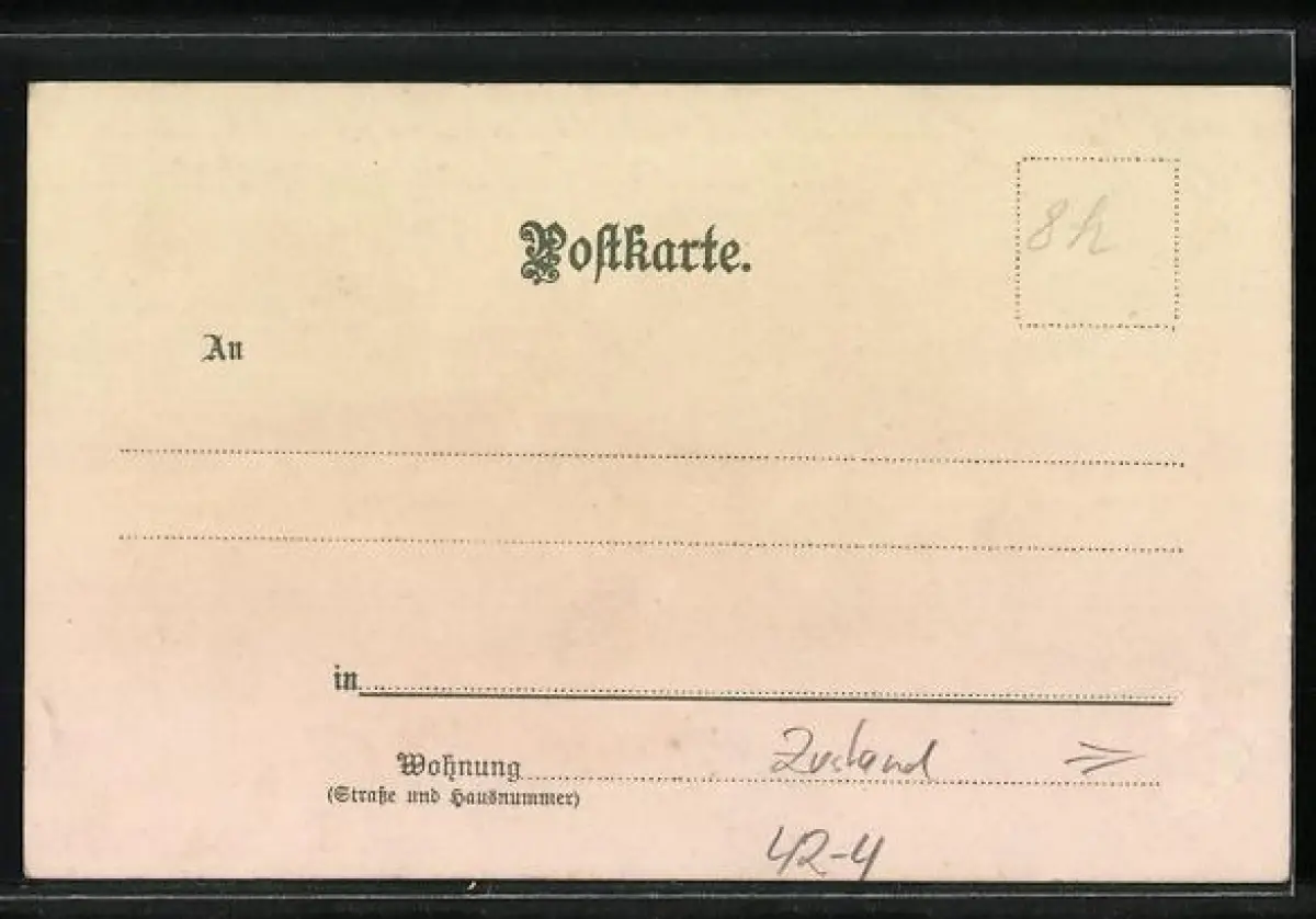 Personenbezogene Daten auf der Rückseite der Karte wurden durch blauen Textmarker unkenntlich gemacht. Die blauen Stellen sind auf die Vorderseite durchgeweicht und wirken sich negativ auf das Postkartenfoto aus