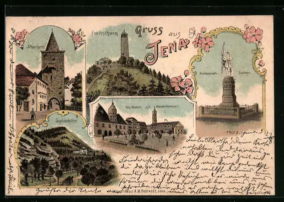 Lithographie Jena, Fuchsturm, Affentrum, Sophienhöhe