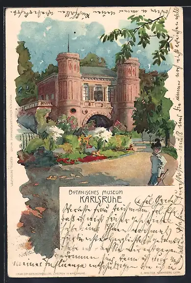 Lithographie Karlsruhe, Partie im Botanischen Garten