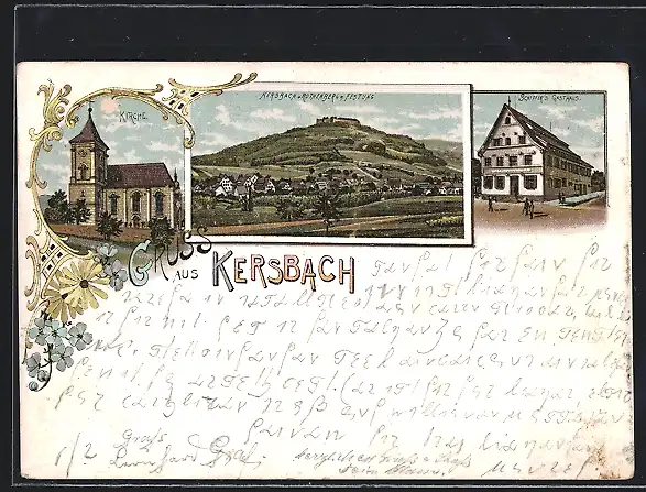 Lithographie Kersbach / Schnaittach, Schiffer`s Gasthaus, Ansicht mit Rothenbach und Festung, Kirche