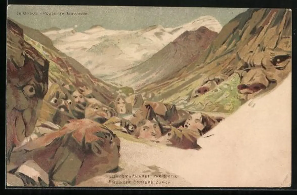 Lithographie Killinger Nr. 131, Le Chaos, Route de Gavarnje, Berg mit Gesicht / Berggesichter