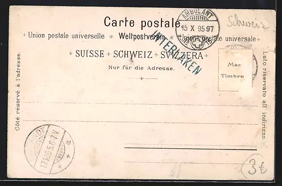 gelaufen 1895, Briefmarke entfernt, rückseitig Oberflächenschaden, Eckknick oben li., guter Zustand