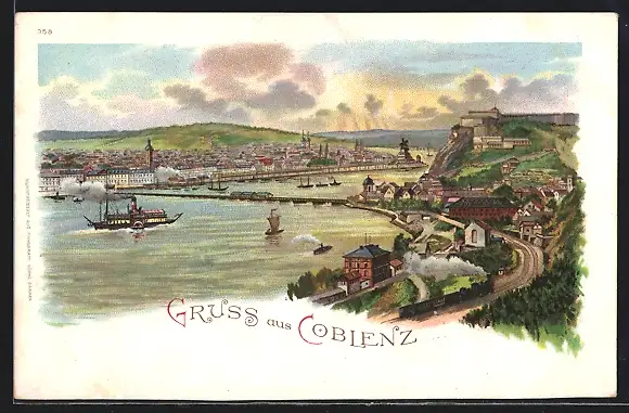 Lithographie Koblenz, Teilansicht