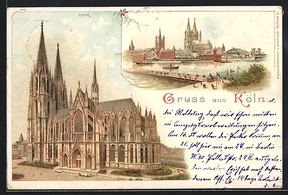 Lithographie Köln, Dom, Blick zur Stadt um 1900