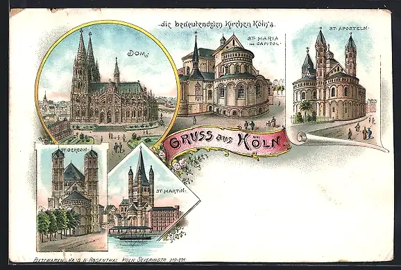 Lithographie Köln, Dom, St. Aposteln, St. Martin