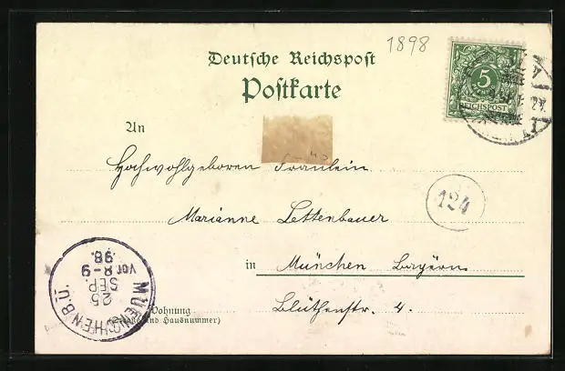 gelaufen 1898, rückseitig Klebe- und Papierreste, Stempelspur, guter Zustand