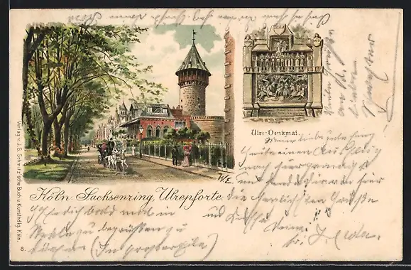 Lithographie Köln-Neustadt, Ulrepforte und Sachsenring, Ulre-Denkmal