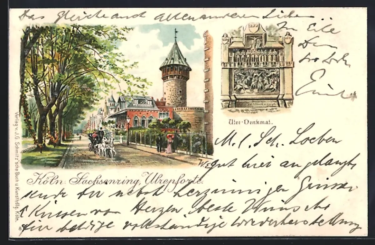 Lithographie Köln-Neustadt, Ulrepforte und Sachsenring, Ulre-Denkmal