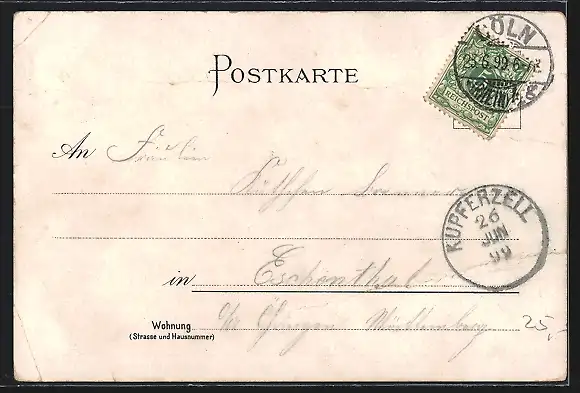 gelaufen 1899, Eckknicke re., minimaler Einriss re. unten, guter Zustand