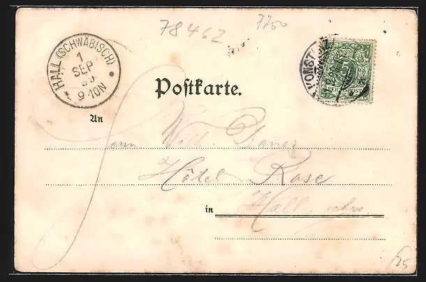 gelaufen 1899, Eckknicke re. und oben li., guter Zustand