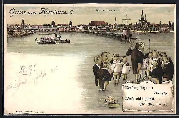 Lithographie Konstanz, Stadtpanorama mit Froschchor
