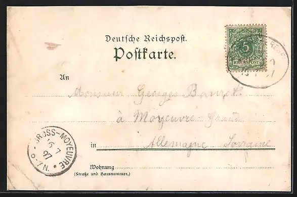gelaufen 1897, Eckknick unten re., Stempelspur, guter Zustand