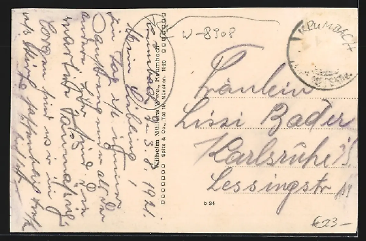 gelaufen 1921, Briefmarke entfernt, Rand beschnitten