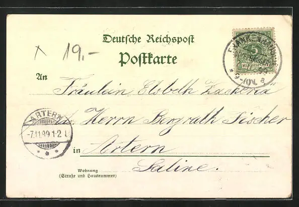 gelaufen 1899, Eckknick li. oben, guter Zustand