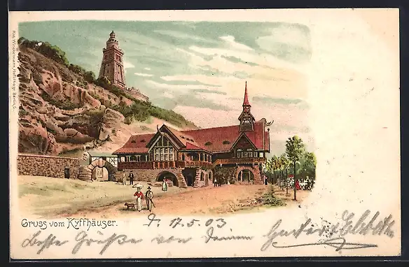 Lithographie Kyffhäuser / Kaiser Wilhelm Denkmal, Restaurant und Denkmal um 1900