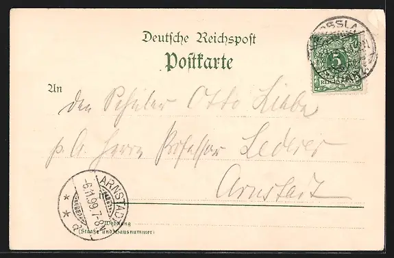 gelaufen 1899, Eckknicke li. oben, rückseitig Oberflächenschaden, guter Zustand