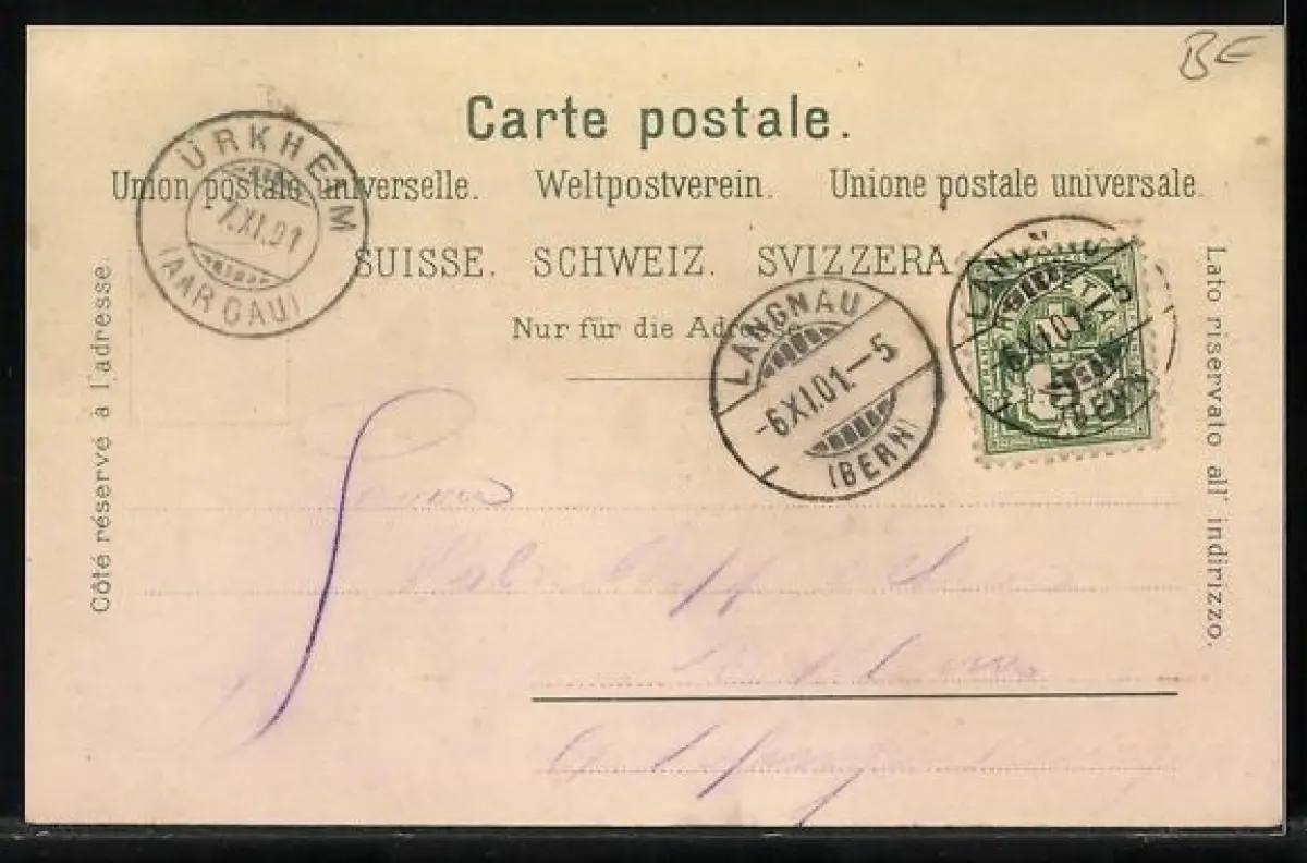 gelaufen 1901, Eckknick rechts oben, guter Zustand