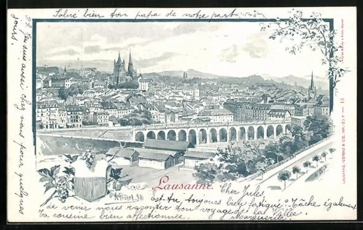 Lithographie Lausanne, Vue Panoramique